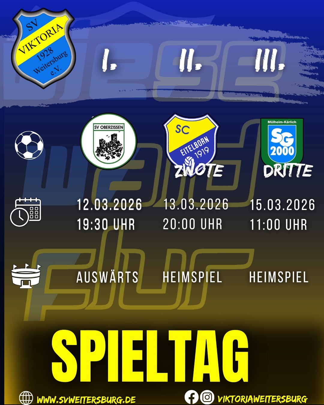 An diesem Spieltag sind die Seniorenteams der Viktoria am Donnerstag, Freitag und Sonntag am Start.