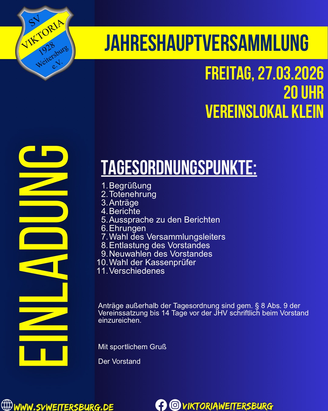 Auch in diesem Jahr hat der SV Viktoria Weitersburg den Nikolaus traditionell zum Nikolausabend eingeladen. Am Freitag, den 5. Dezember 2025, wird er ab 17:30 Uhr im Weiherstadion erwartet, um dort Kinder, Eltern und Großeltern herzlich zu begrüßen.