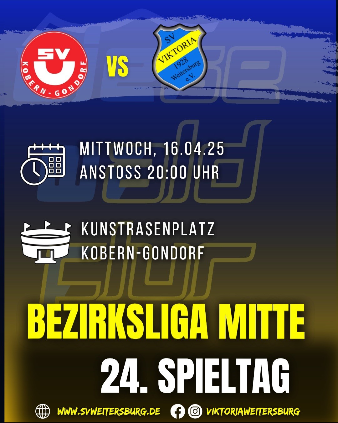 Mittwoch, 1. April 2026, 20.00 Uhr, 23. Spieltag Bezirksliga Mitte